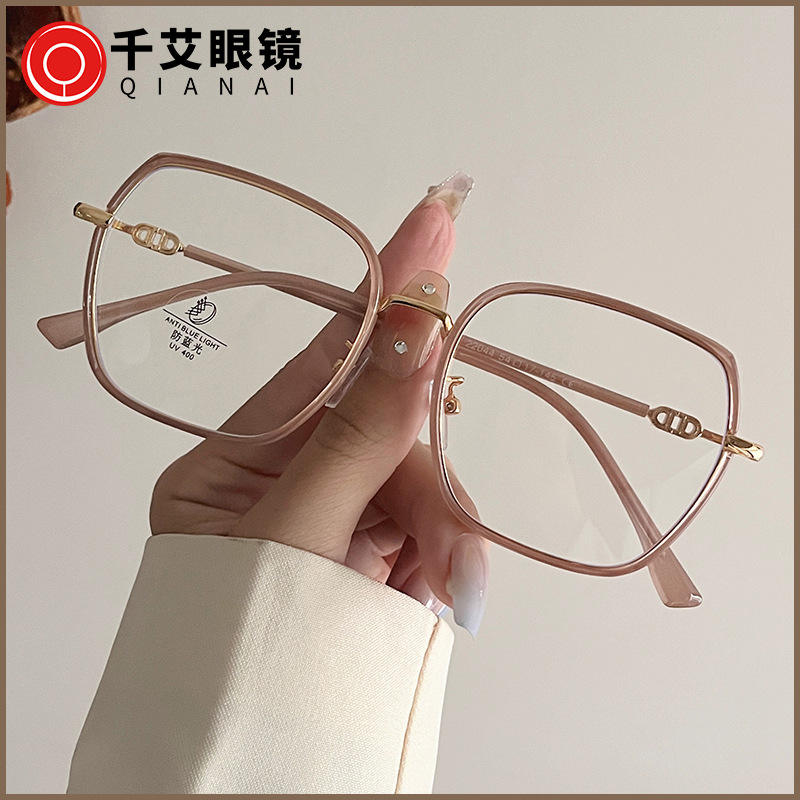 กรอบแว่นตา Qianai Geometric TR90 ป้องกันแสงสีฟ้า ทรงเต็มกรอบ สำหรับทุกเพศ เลนส์ AC ดีไซน์ทรงไม่สมมาตร