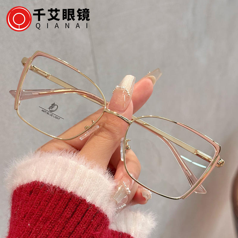 กรอบแว่นตา Qianai ทรงแคทอาย ป้องกันแสงสีฟ้า สำหรับผู้หญิง เลนส์อะซีทิลีน ทรงเต็มกรอบ สไตล์ยุโรป