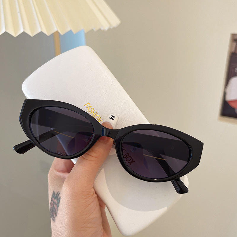 เฉียนไนแว่นกันแดดทรงแคทอายกรอบสีดำเลนส์ Ac ป้องกันรังสียูวี 400 สำหรับผู้หญิงแฟชั่นสไตล์สตรีทอินเทรนด์