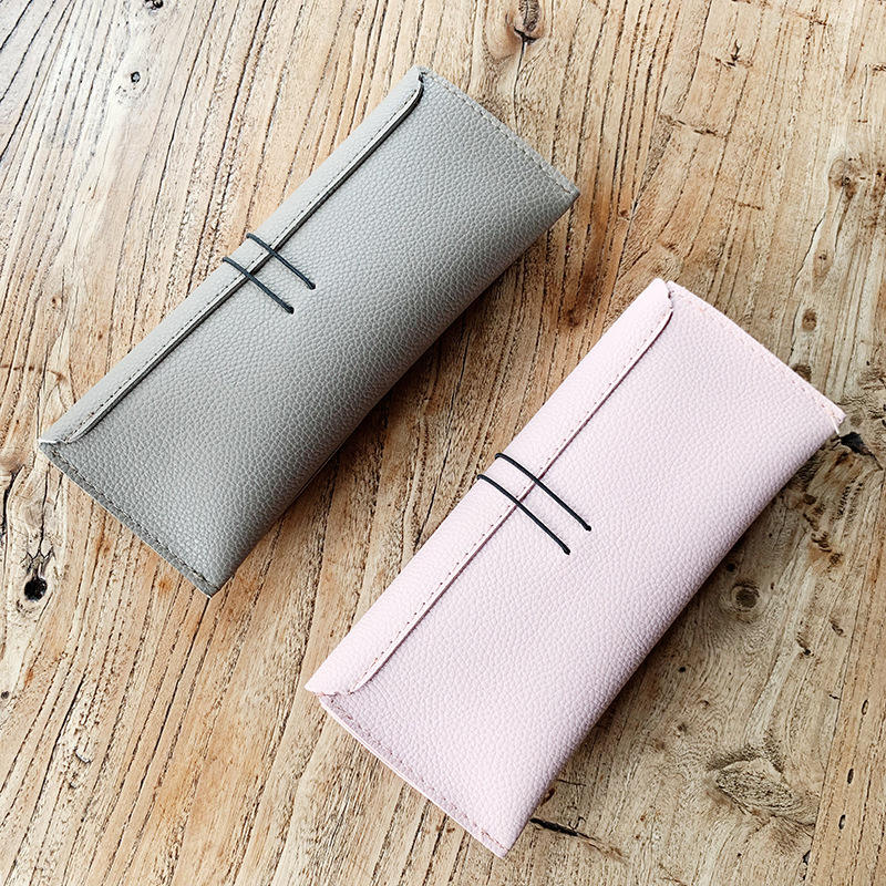 เฉียนไนกล่องใส่แว่นตาหนังทรงสี่เหลี่ยมผืนผ้าแบบนุ่มพับได้สำหรับผู้ชายผู้หญิงสีชมพูสีฟ้าสีดำกาแฟสีกากีแอปริคอท