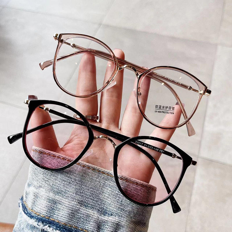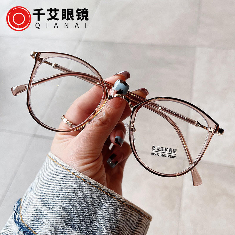 กรอบแว่นตา Qianai ทรงวงรี ป้องกันแสงสีฟ้า เลนส์ PC สำหรับผู้หญิง ใส่ได้ทุกวัน