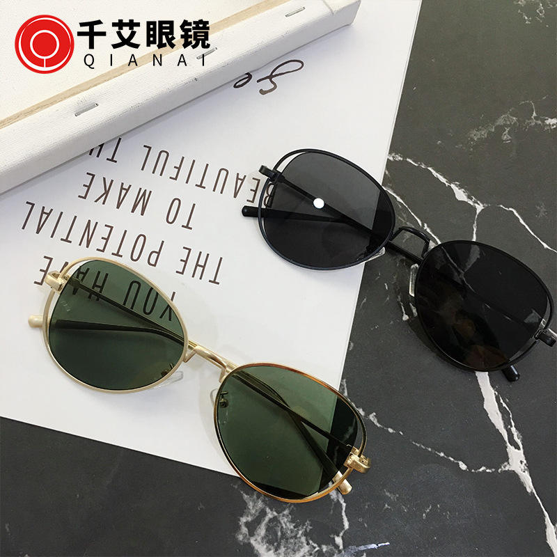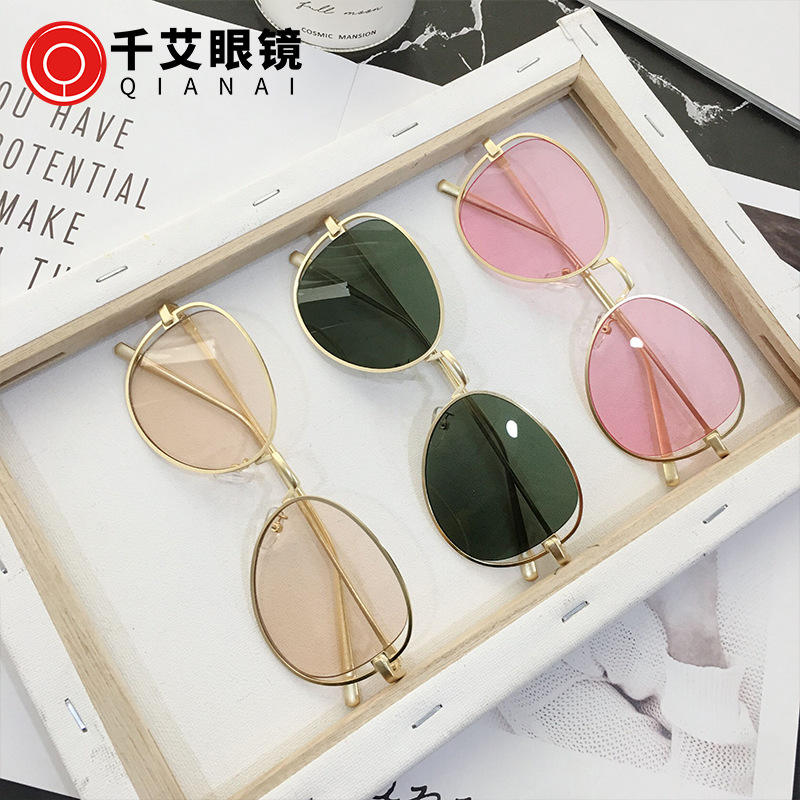 เฉียนไนแว่นกันแดดทรงวงรีสำหรับผู้หญิงกรอบทองเลนส์ Ac ป้องกันรังสียูวี 100 แว่นกันแดดแฟชั่นประเภท 3 แว่นกันแดด
