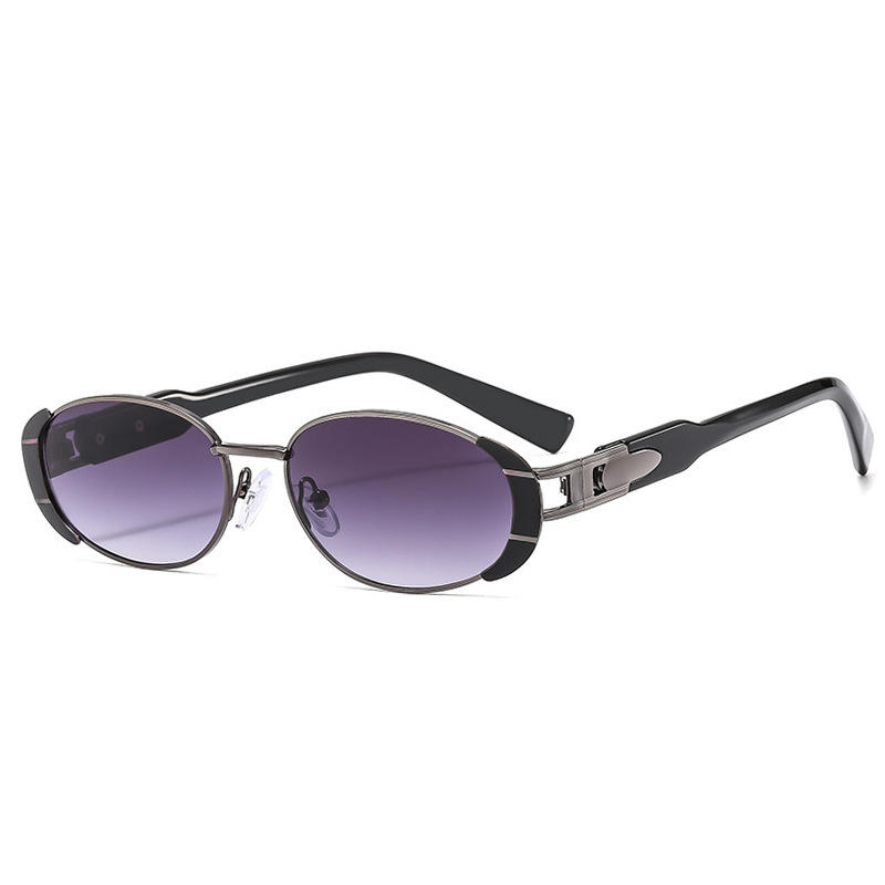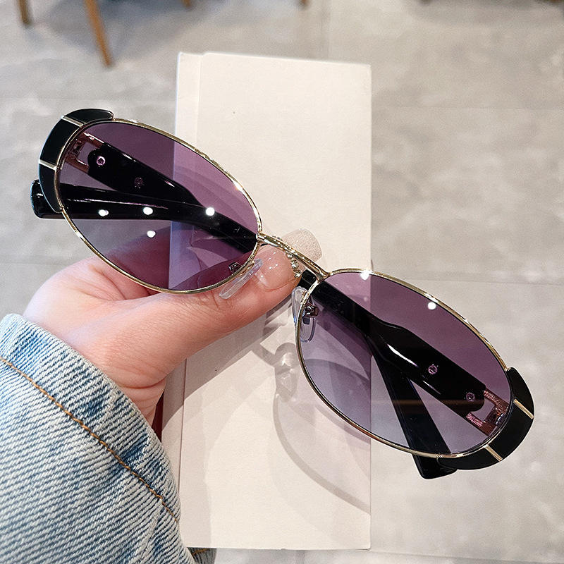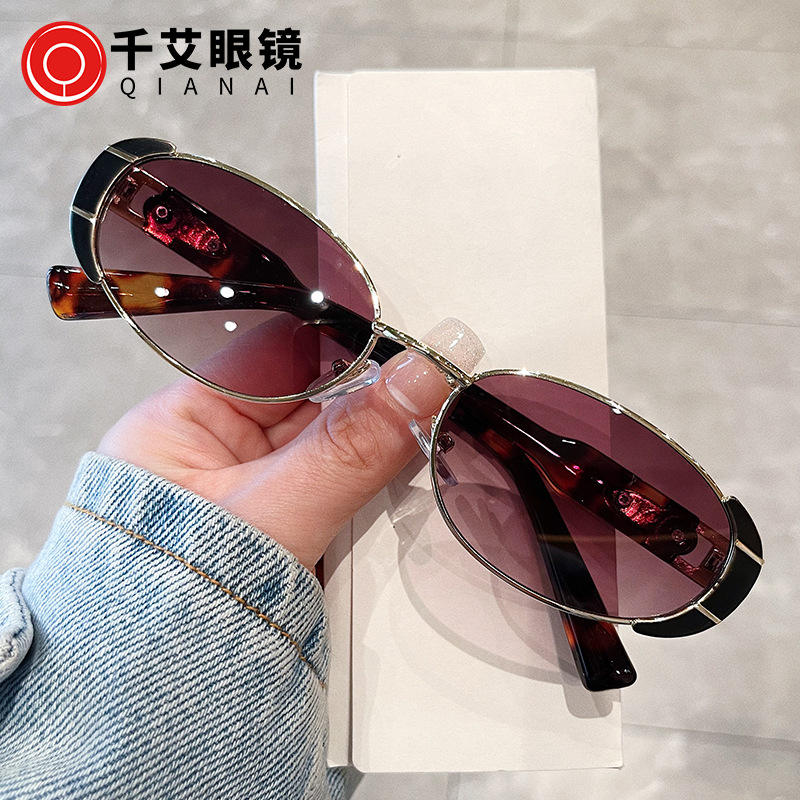 เฉียนไนแว่นกันแดดทรงวงรีสำหรับผู้หญิง UV400 กรอบโลหะ AC เลนส์ประเภท 3 ที่บังแดดกรอบสีดำสไตล์ย้อนยุคอินเทรนด์