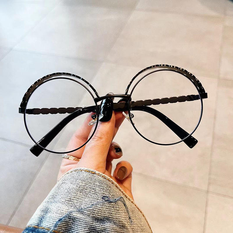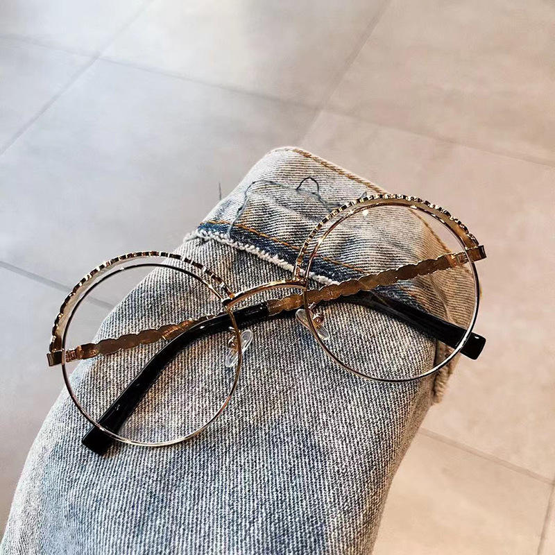 เฉียนไนแว่นตากรอบกลมป้องกันแสงสีฟ้าขาแว่นโลหะสำหรับผู้หญิงเลนส์พลาโนแว่นตาแฟชั่นขนาดกลาง