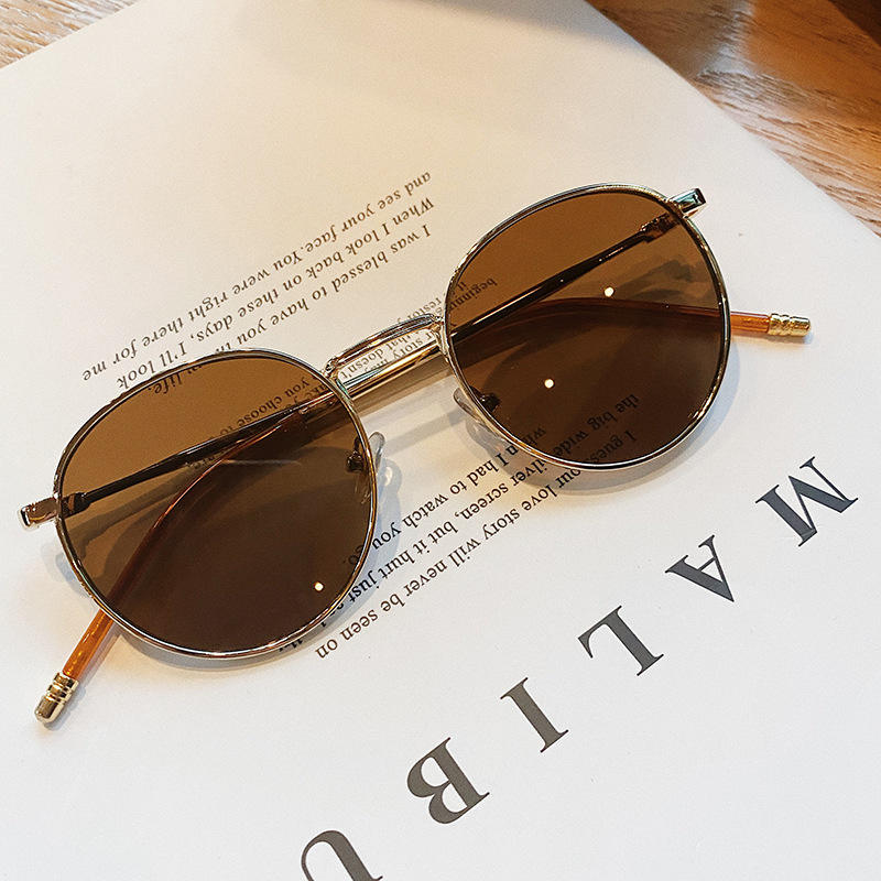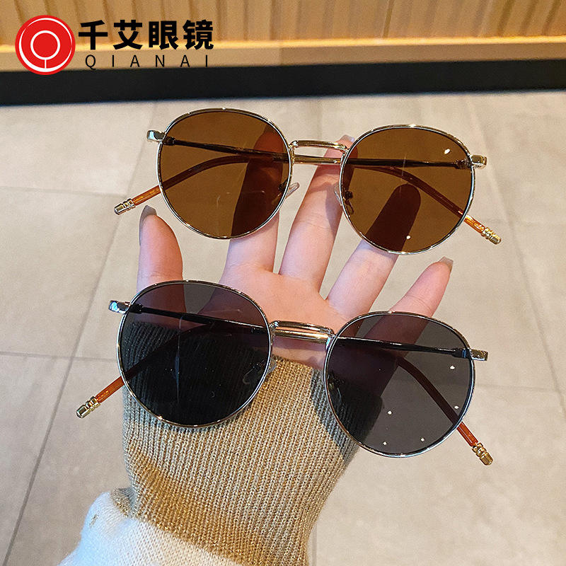 เฉียนไนแว่นกันแดดโลหะทรงกลมกรอบทองเลนส์พีซีป้องกันรังสียูวี 100% แฟชั่นสำหรับทุกเพศกีฬากลางแจ้งครีมกันแดด