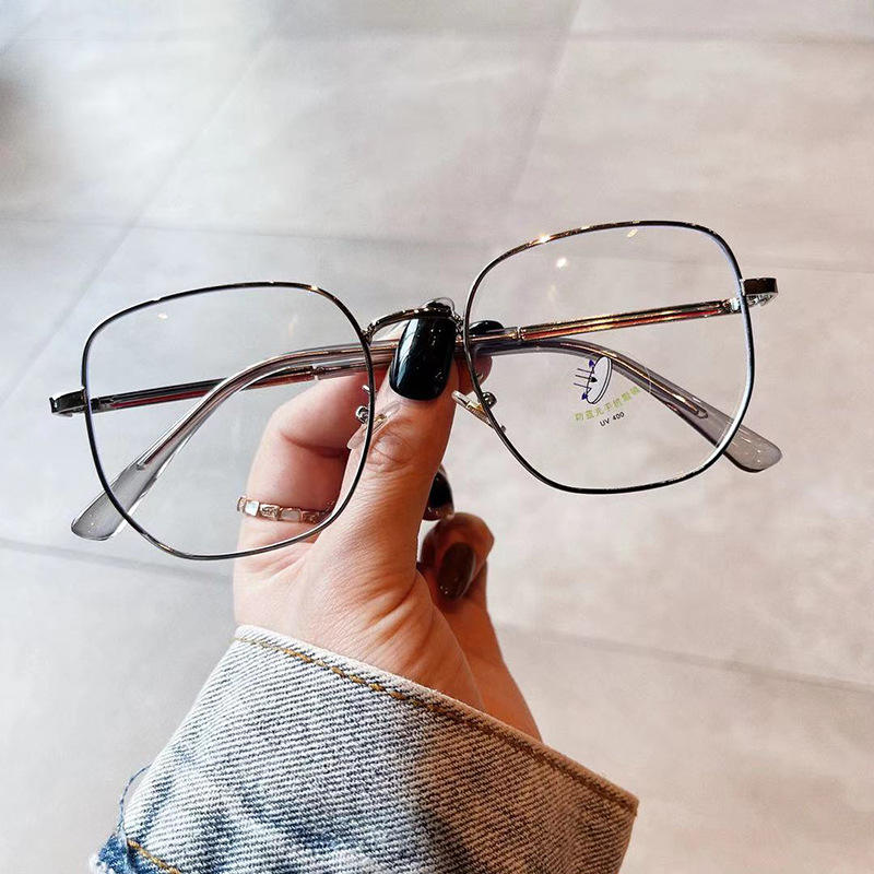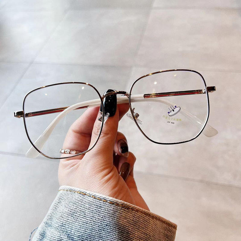 กรอบแว่นตา Qianai Square ขนาดกลาง เลนส์ PC ป้องกันรังสียูวีและแสงสีฟ้า สำหรับทุกเพศ ขาแว่นโลหะลายทาง