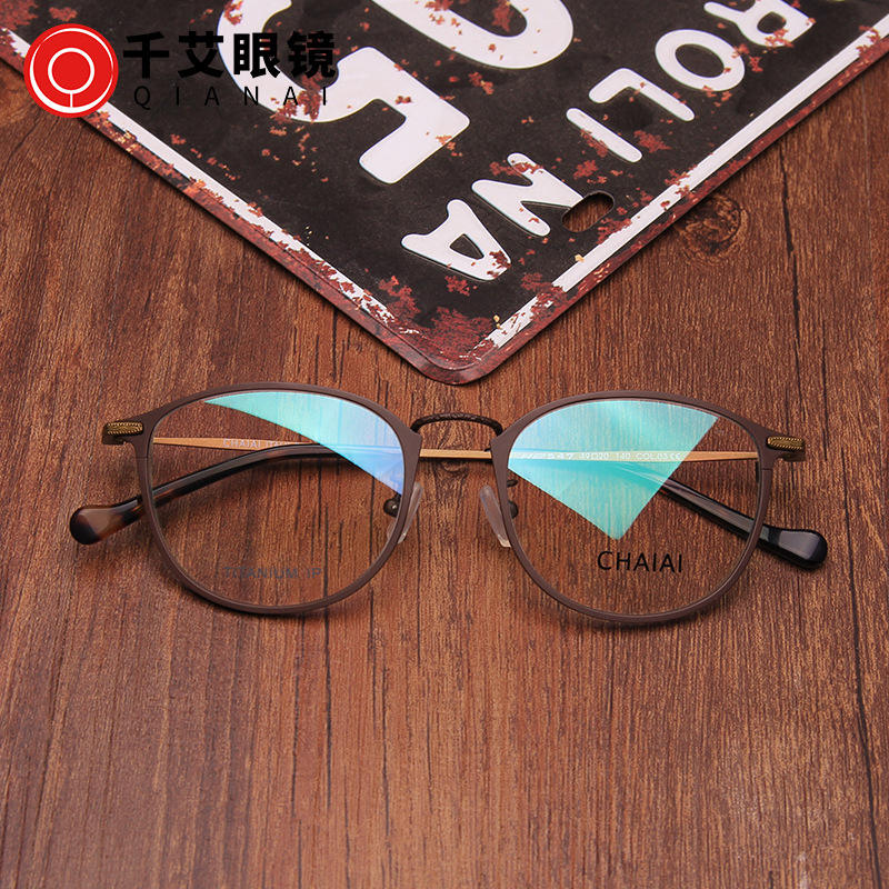 Qianai Titanium Oval Eyeglasses Frames 547 Full Frame Anti Uv Unisex Plano Lenses Round Shape Ac Lens