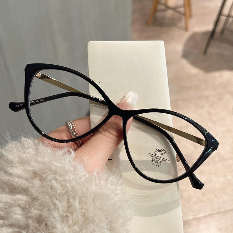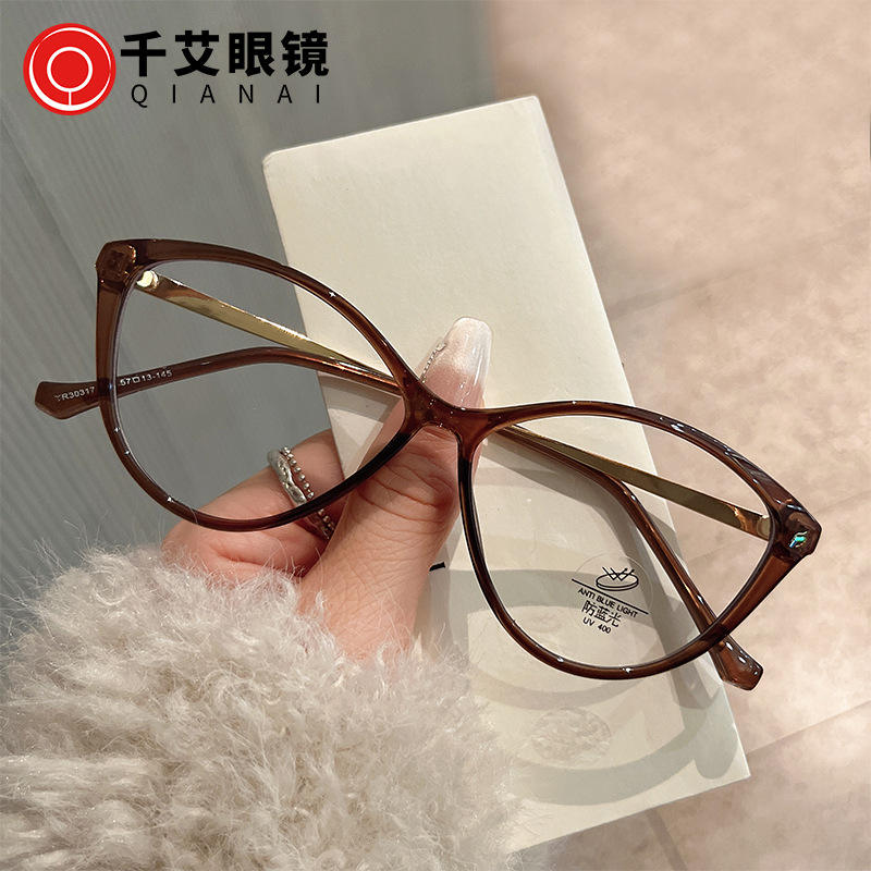 Qianai กรอบแว่นสายตาทรงแมวของผู้หญิงกรอบเต็มป้องกันแสงสีฟ้าเลนส์ AC ทรงรี JS1-4-30317