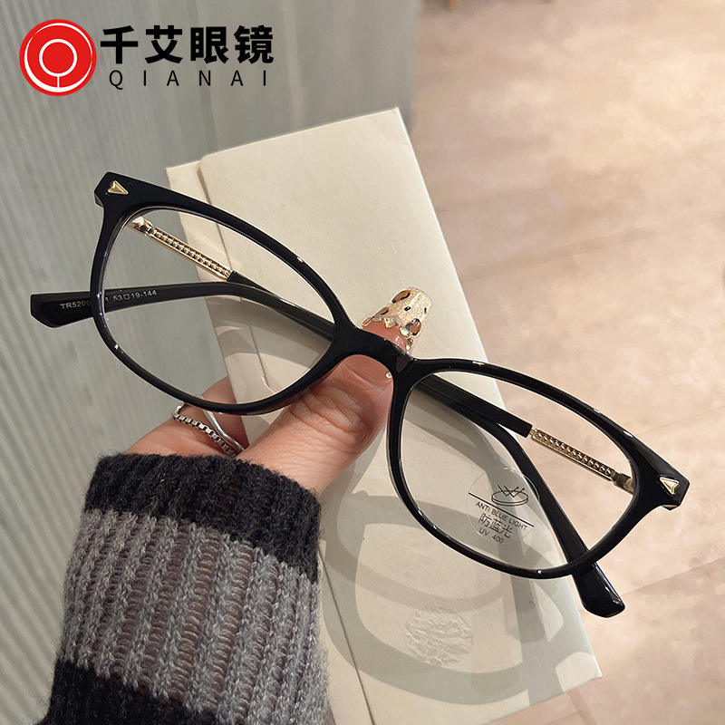 Qianai แว่นสายตาทรงรีของผู้หญิง TR acetate ป้องกันแสงสีฟ้าป้องกันรังสียูวีกรอบ JS7-2-52002