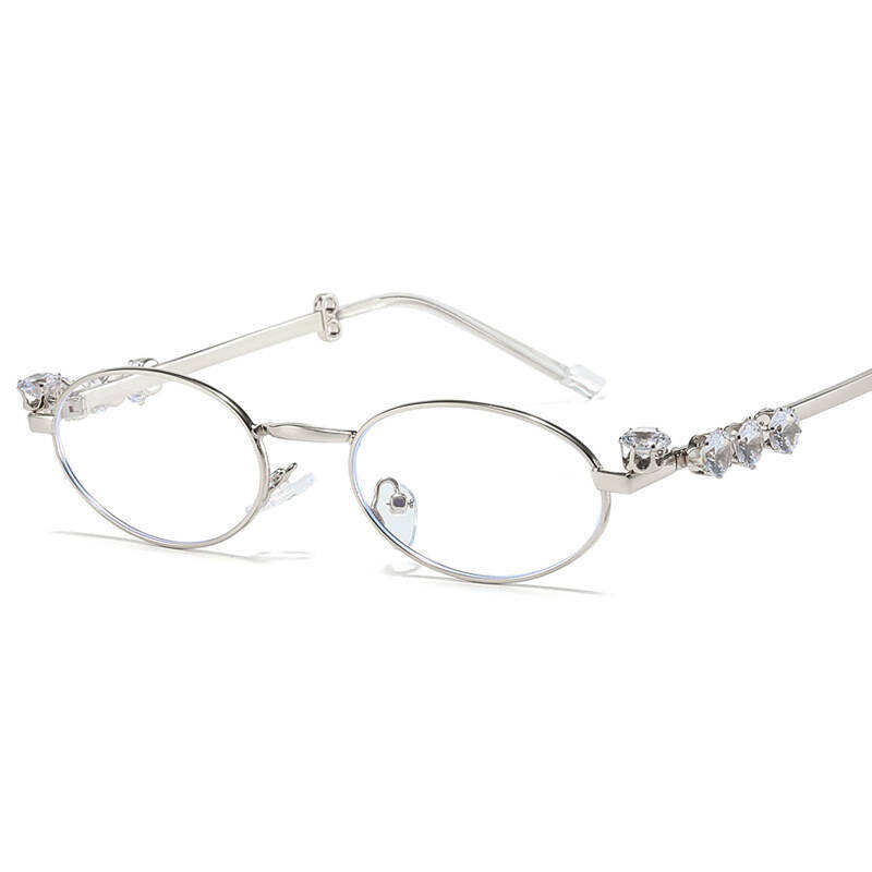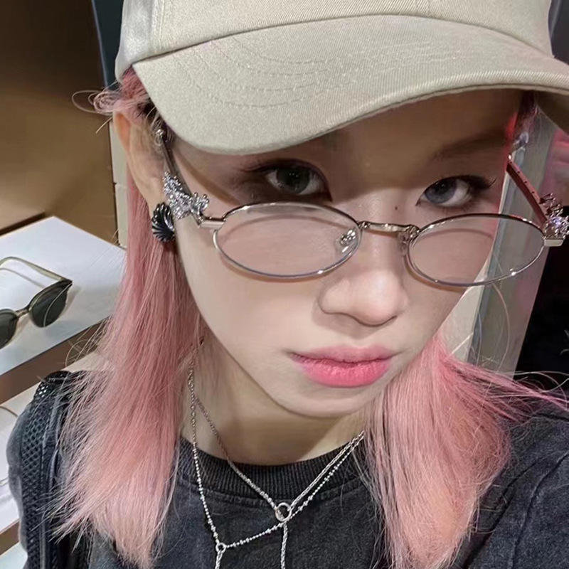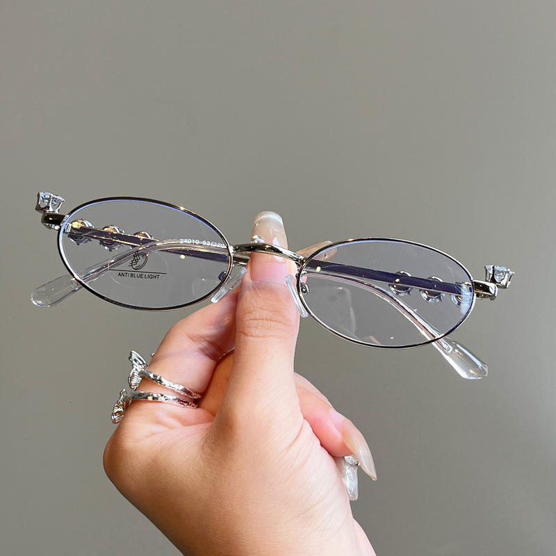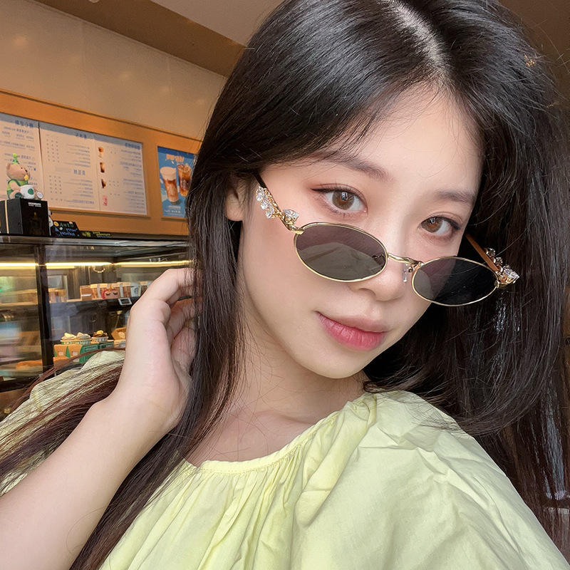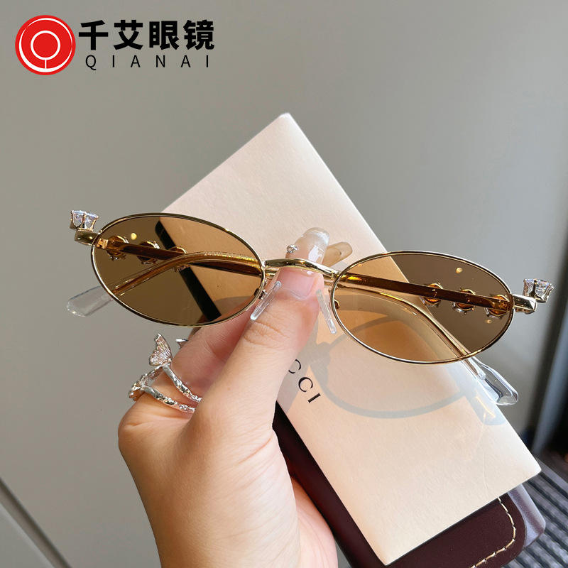 เฉียนไนแว่นกันแดดทรงวงรีสำหรับผู้หญิง สีเงิน สแตนเลส UV400 น้ำหนักเบา เลนส์ AC ประเภท 3 รุ่น E2-24010