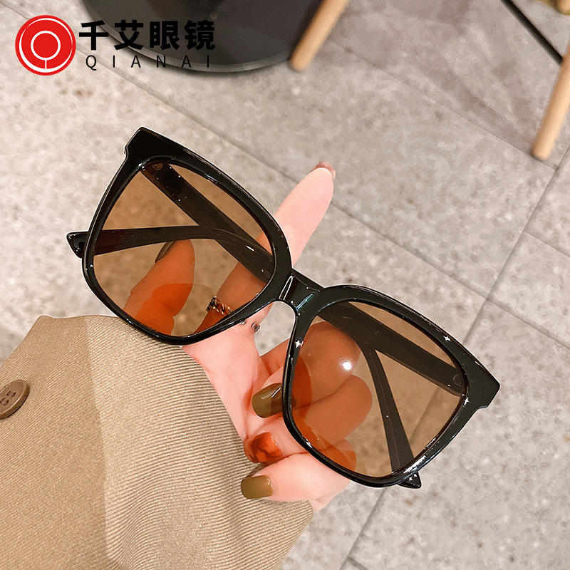 แว่นกันแดดทรงสี่เหลี่ยมขนาดใหญ่สำหรับผู้หญิง Qianai กรอบพลาสติกสีดำ ป้องกันรังสียูวี 400 เลนส์แบบที่ 3 สำหรับการสวมใส่ที่ทันสมัย
