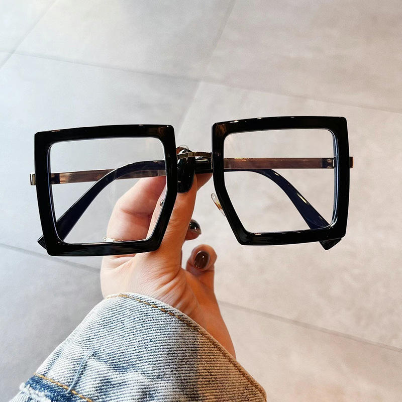 แว่นตาป้องกันแสงสีฟ้าทรงสี่เหลี่ยมสำหรับผู้หญิง Qianai เลนส์พลาโนแบบเต็มกรอบ เลนส์พีซี สไตล์เกาหลี แว่นตาแฟชั่น