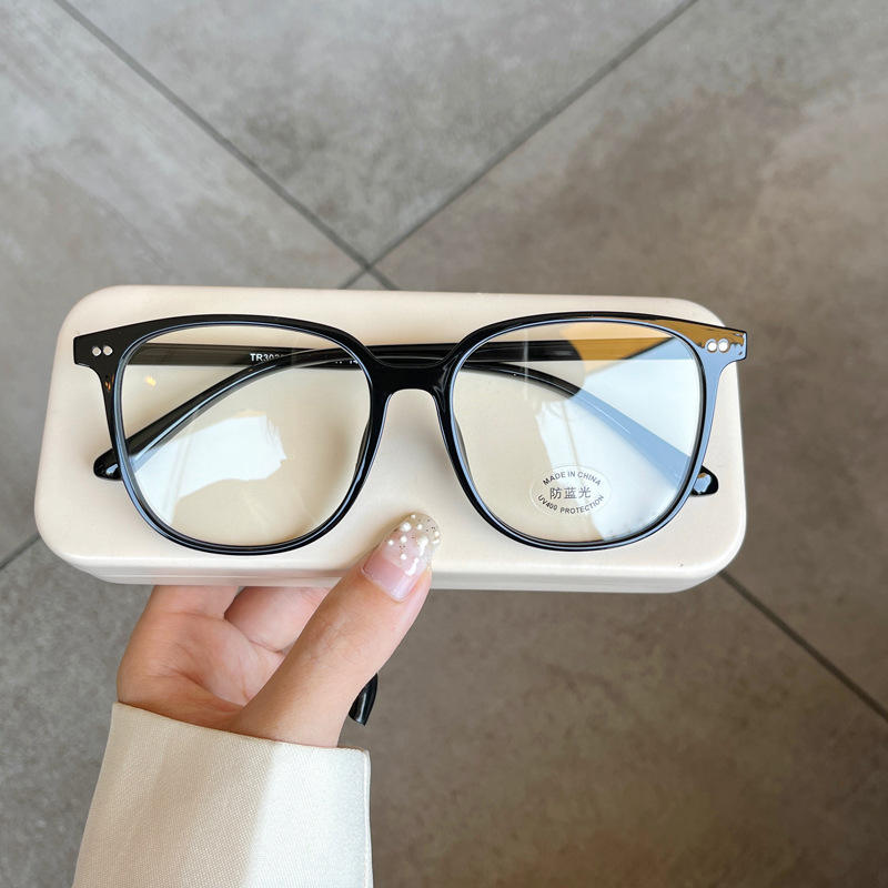 กรอบแว่นตาผู้หญิง Qianai รุ่น TR90 M3-30220 ป้องกันแสงสีฟ้า ตกแต่งหมุดสไตล์เกาหลี กรอบใหญ่ แว่นสายตา