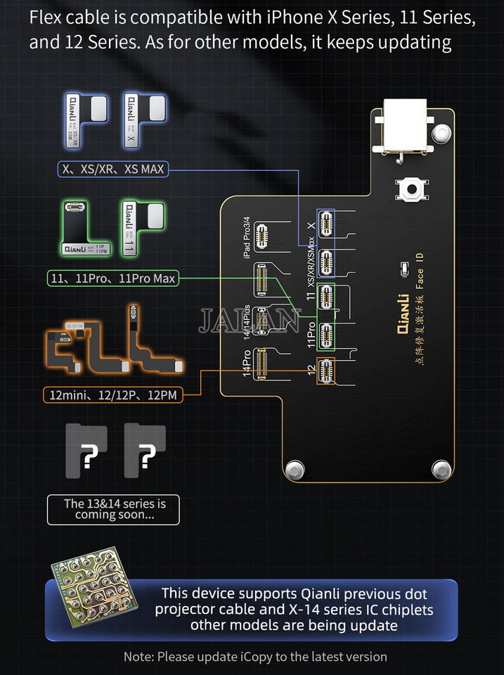 Qianli ICopy Plus 2.2 สำหรับ iPhone 14 13 12 11 XSMAX Xs Xr 7 7P 8 8P อุปกรณ์ฟื้นฟูสี LCD ดั้งเดิม เครื่องทดสอบแบตเตอรี่และหูฟัง