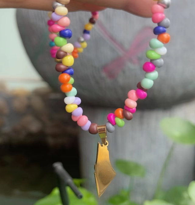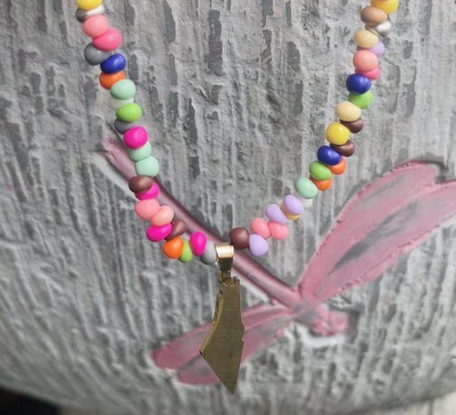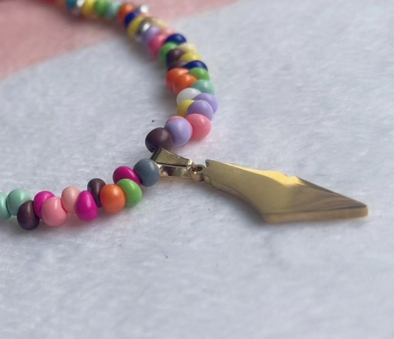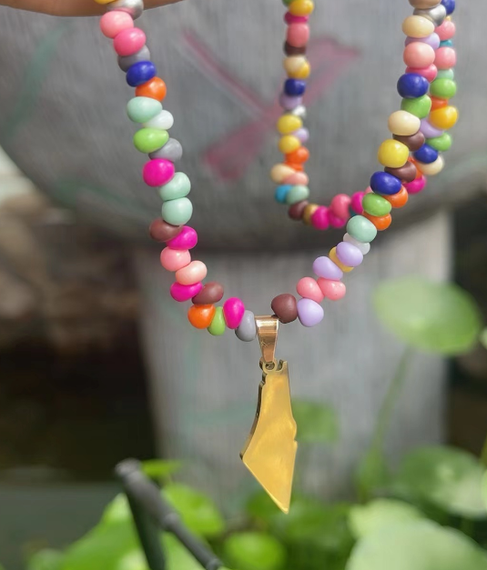 สร้อยคอจี้รูปแผนที่ปาเลสไตน์ประดับลูกปัดหลากสี Qifei พร้อมข้อความ Free Palestine พร้อมส่ง ของขวัญเครื่องประดับสำหรับผู้หญิง