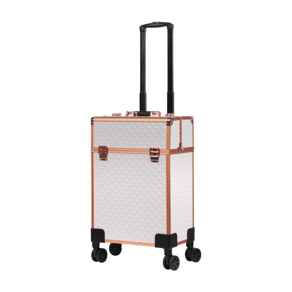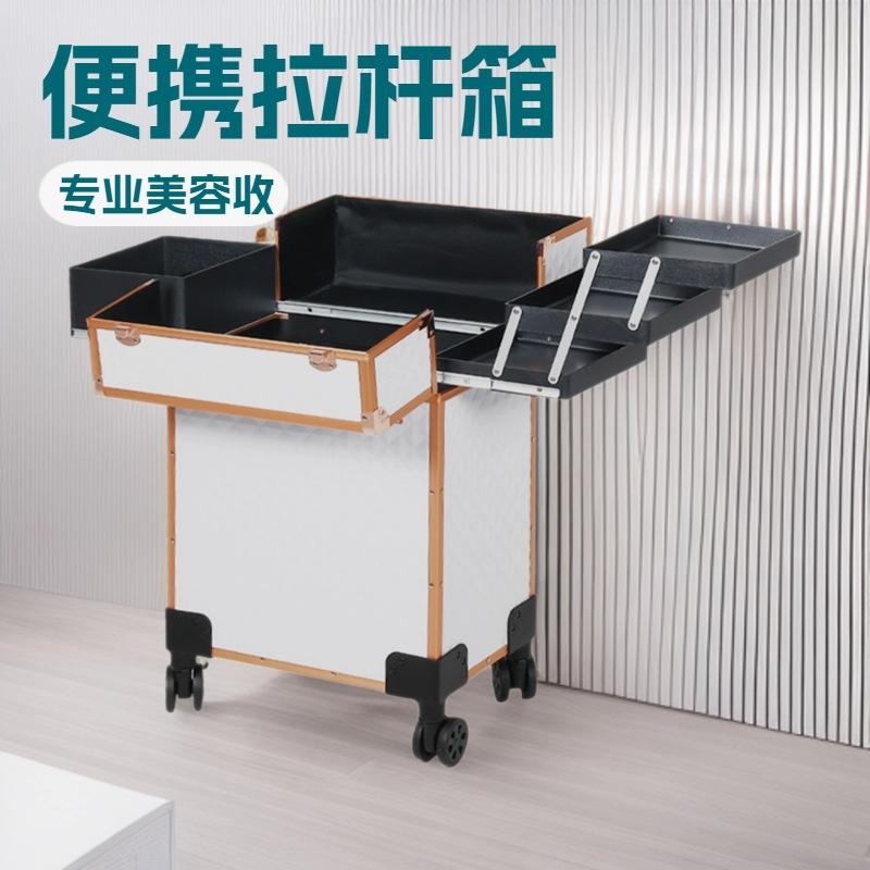 กระเป๋าเครื่องสำอาง Qihui รุ่น 3599 สีขาวทอง พร้อมล้อเลื่อน สำหรับร้านเสริมสวยและจัดเก็บของใช้ในบ้าน คอลเลคชั่นฤดูใบไม้ผลิ 2023