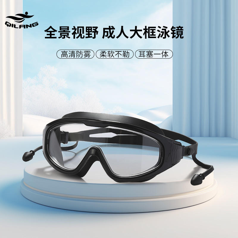 แว่นตาว่ายน้ำกรอบใหญ่ Qilang กันน้ำ ป้องกันฝ้า พร้อมที่อุดหูในตัว สำหรับผู้ใหญ่ ใช้ได้ทั้งชายและหญิง สำหรับดำน้ำและว่ายน้ำ