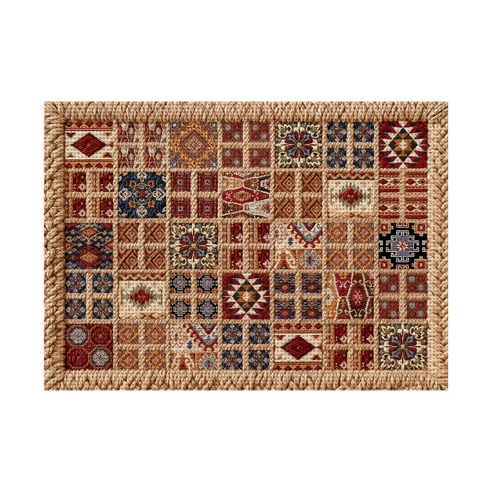 Qilin Rubber Sole Yunqi Cangshan Door Mat Rectangle Polyester Fiber Non Slip Geometric Pattern Home Use