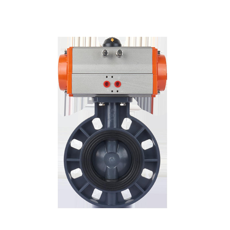 วาล์วผีเสื้อพลาสติก PVC ทนการกัดกร่อน ป้องกันสนิม Qimaike DN50-D300 แบบนิวเมติก ซีลนุ่ม D671X-10S สำหรับสื่อทางน้ำมัน