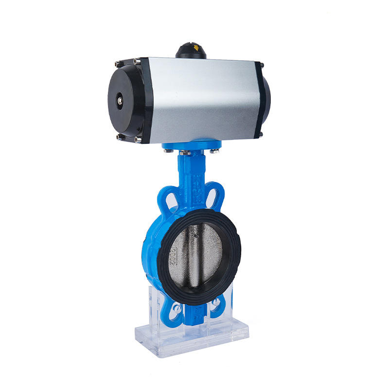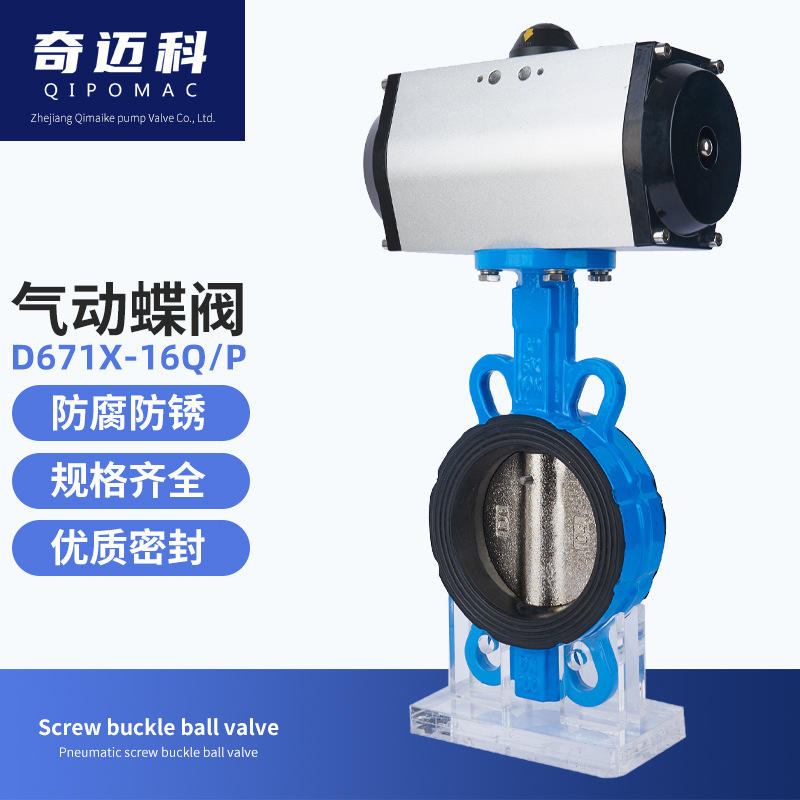 วาล์วผีเสื้อแบบนิวเมติก Qimaike D671X-16 แบบกำหนดเอง แบบซอฟต์ซีท ทำจากเหล็กดัด/สแตนเลส แบบเวเฟอร์