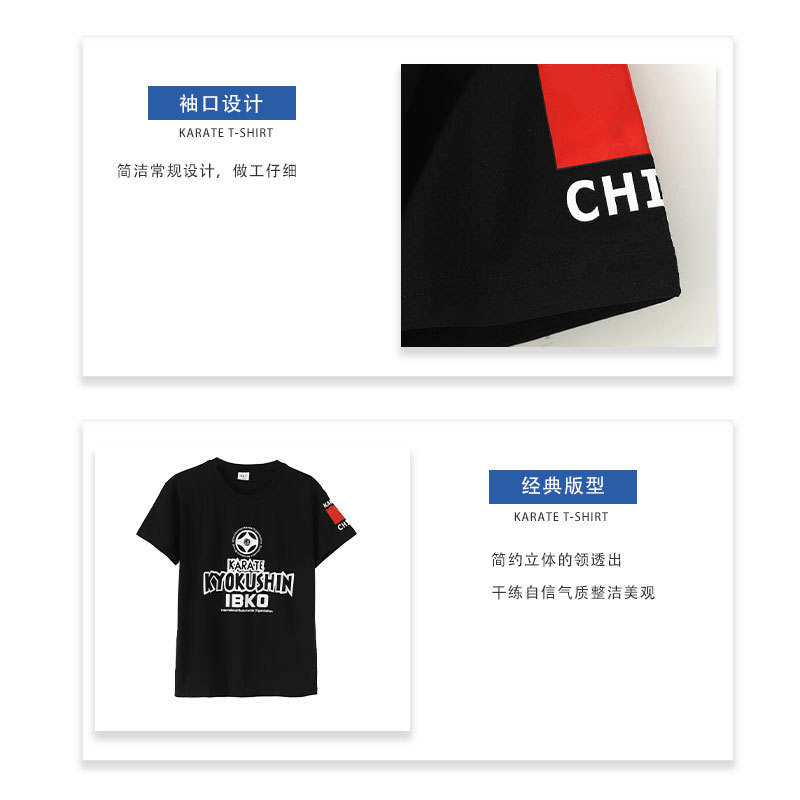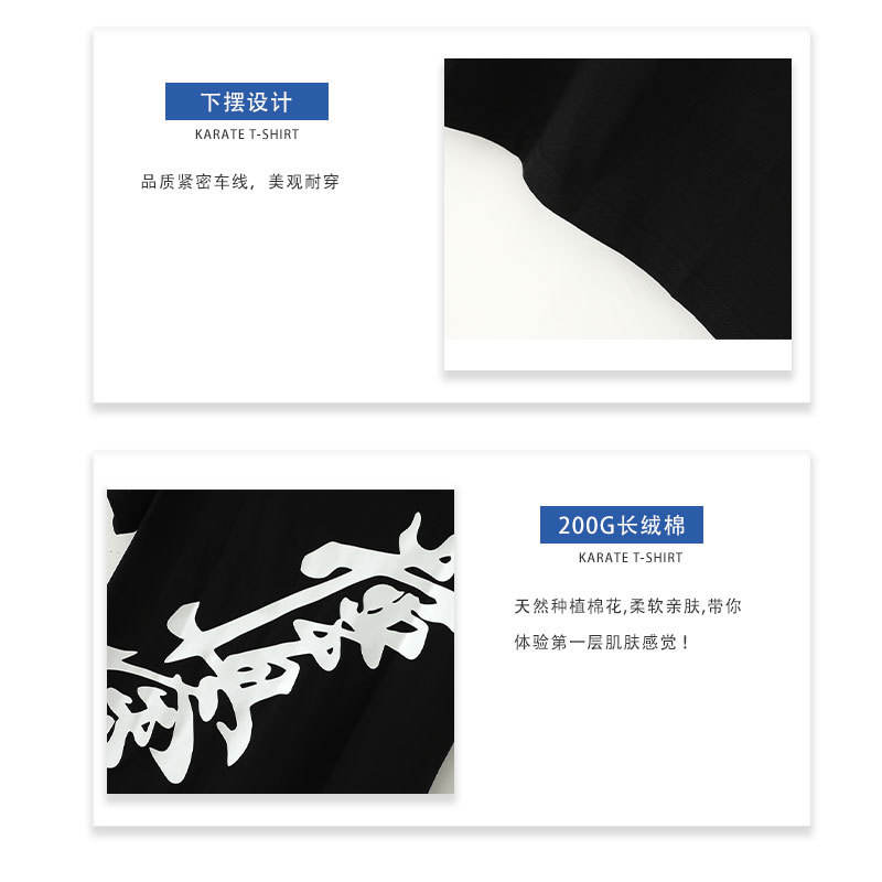 เสื้อยืดคาราเต้ชิงเต่า ผ้าฝ้าย 200 กรัม ระบายอากาศได้ดี เหมาะสำหรับฝึกศิลปะการต่อสู้ สีดำล้วน