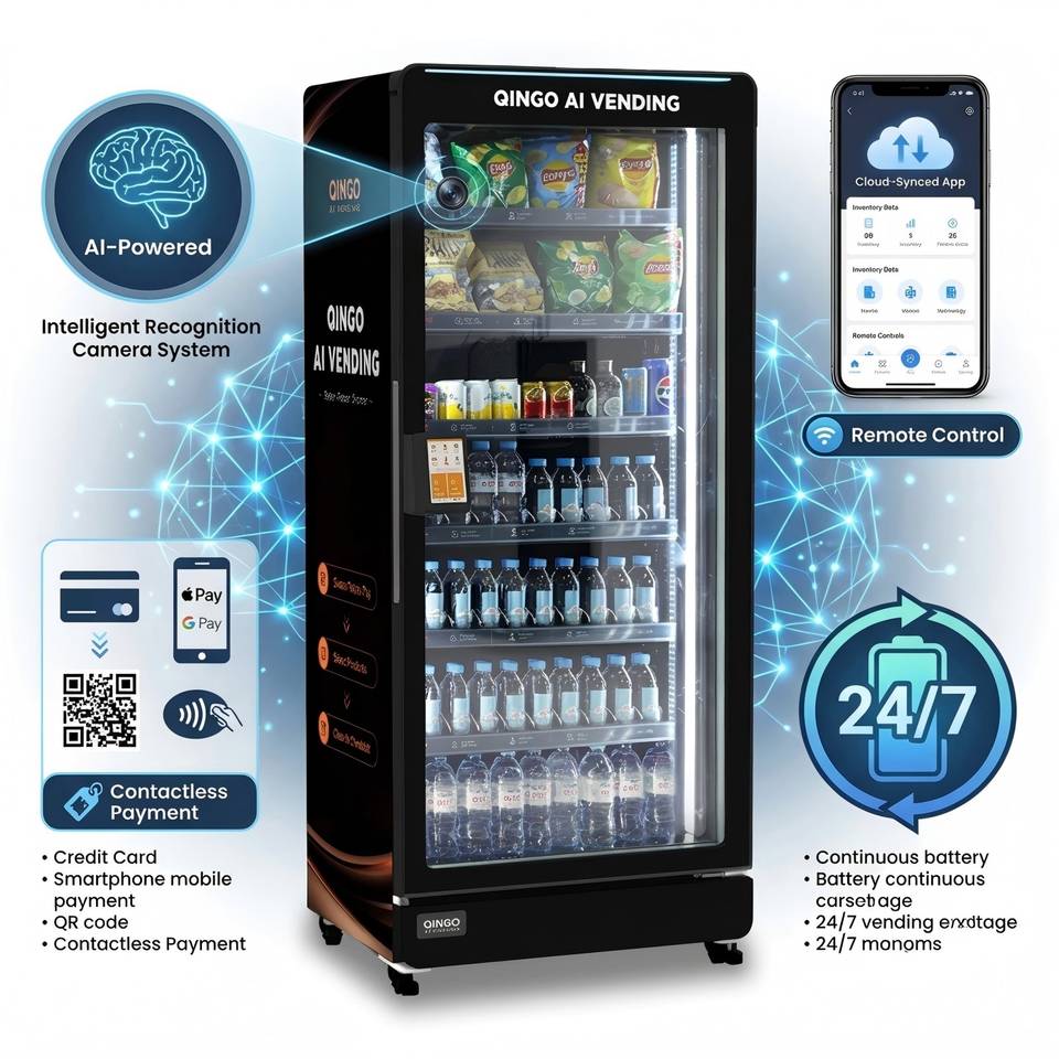 ระบบจำหน่ายสินค้าอัจฉริยะ Qingo Ace ความจุ 580 ลิตร พร้อมระบบจดจำภาพแบบเรียลไทม์ เครื่องจำหน่ายสินค้าอัตโนมัติสำหรับโรงเรียน พร้อม SDK