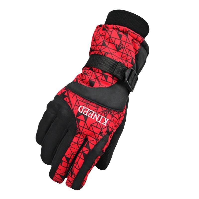 ถุงมือสกี Qinyida รุ่น L1301 สีฟ้าลายเรขาคณิต บุขนหนานุ่ม กันน้ำ อุ่น เหมาะสำหรับกิจกรรมกลางแจ้ง ขี่เล่นกลางแจ้ง สำหรับผู้ใหญ่ ทั้งชายและหญิง