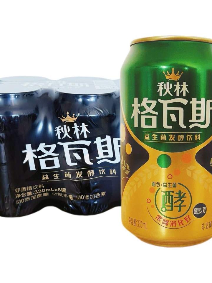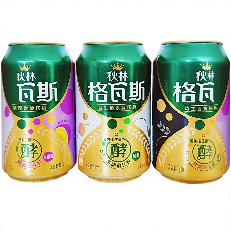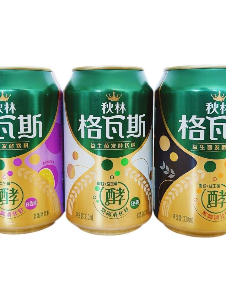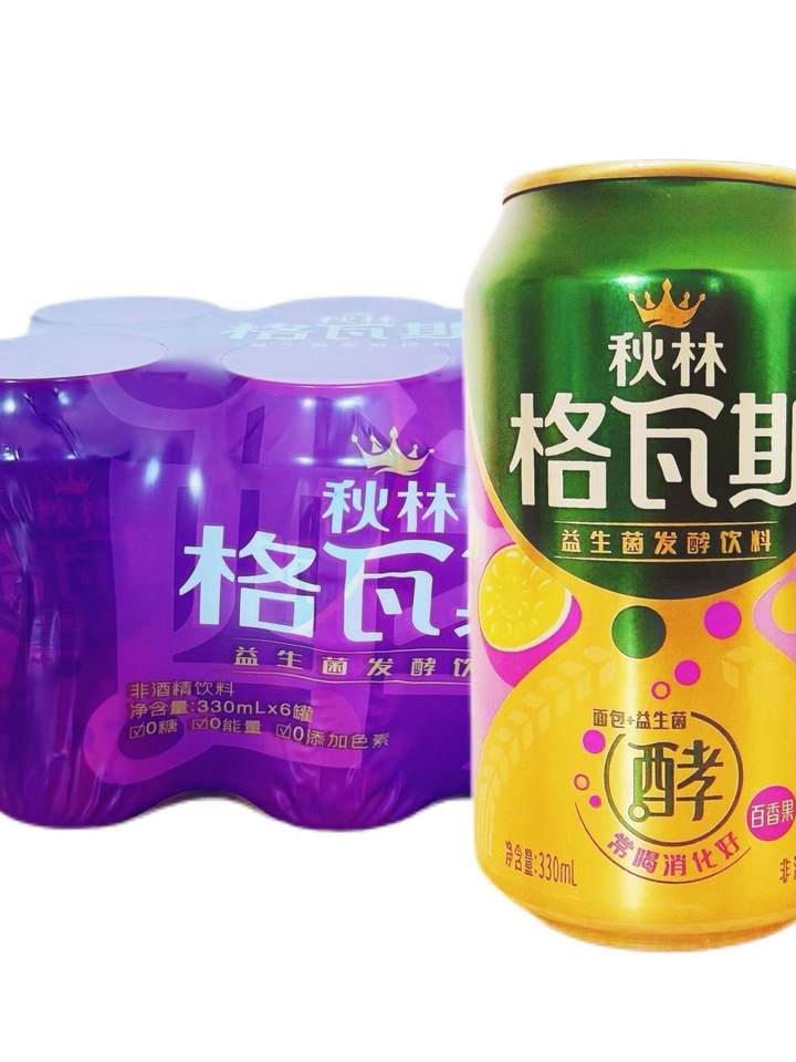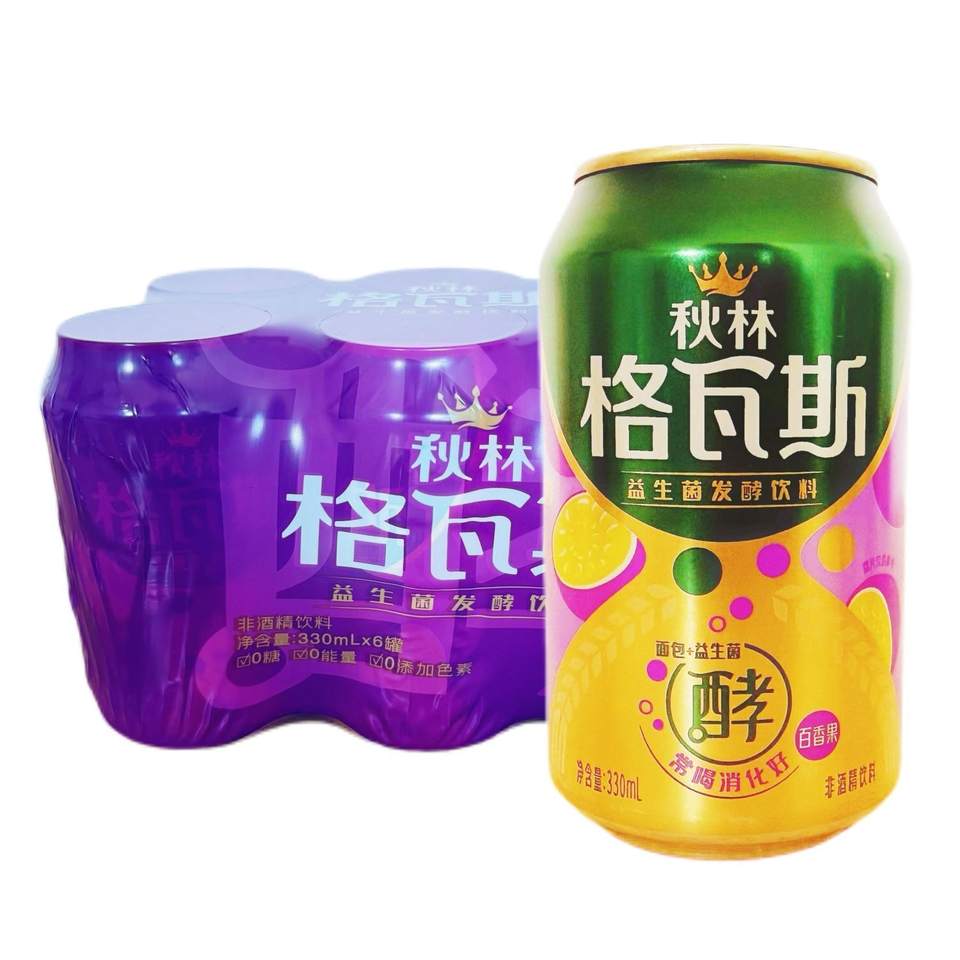 เครื่องดื่มหมักโปรไบโอติก ฉีหลิน ควาส รสผลไม้/คลาสสิค ออริจินัล/เสาวรส ไรย์มอลต์ 330 มล.*6 กระป๋อง ไม่มีสีสังเคราะห์