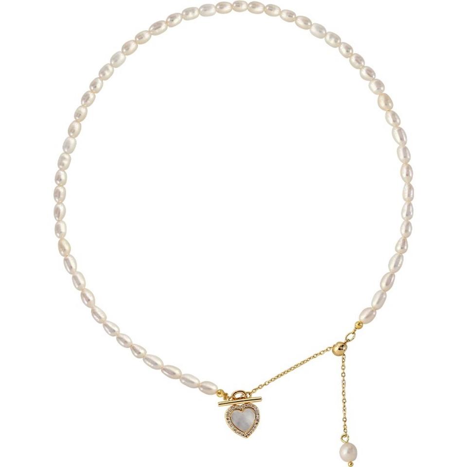 สร้อยคอมุกแท้สำหรับเธอ ของขวัญวันฉีซี ดีไซน์เรียบหรู สไตล์นางฟ้า พร้อมจี้รูปหัวใจ สำหรับฤดูร้อน