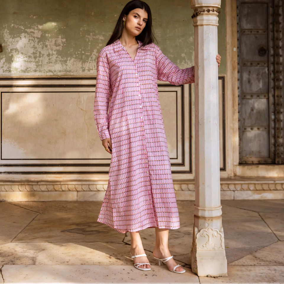 Qjimpex ชุดเดรสสตรีผ้าฝ้ายพื้นเมืองลายดอก, ชุดเดรสยาวคลุมเข่าชุดเดรสมุสลิมแบบดั้งเดิม