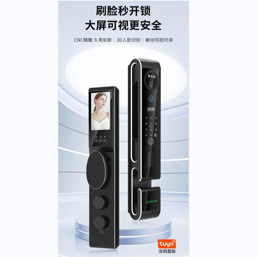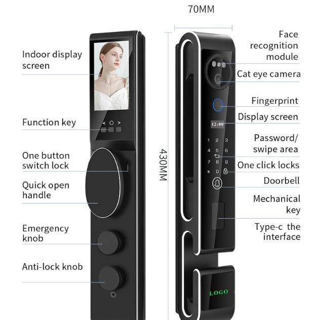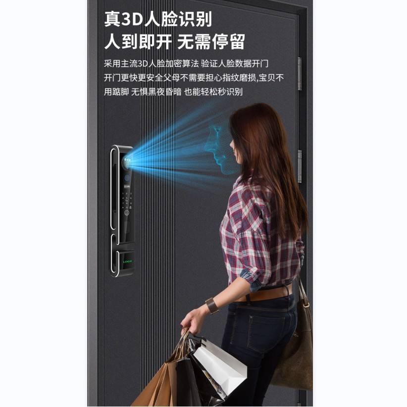 กุญแจล็อคอัจฉริยะ Qleung S666 ระบบจดจำใบหน้า 3 มิติ สแกนลายนิ้วมือ ควบคุมผ่านแอพ สีดำ สำหรับความปลอดภัยในบ้าน