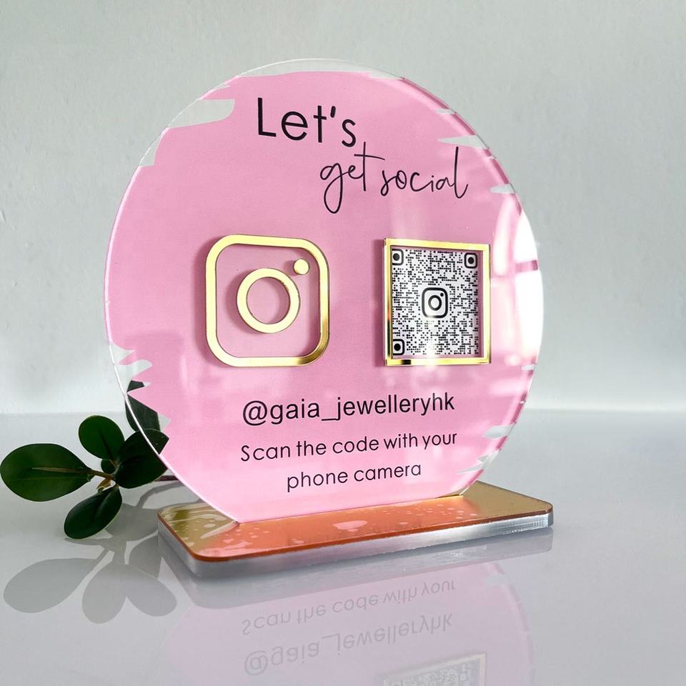 ป้ายข้อความ QR โค้ดสัญลักษณ์ทางธุรกิจอินสตาแกรมโลโก้ที่กำหนดเองได้บนเฟซบุ๊กกระจกสีโรสโกลด์สัญลักษณ์อะคริลิค