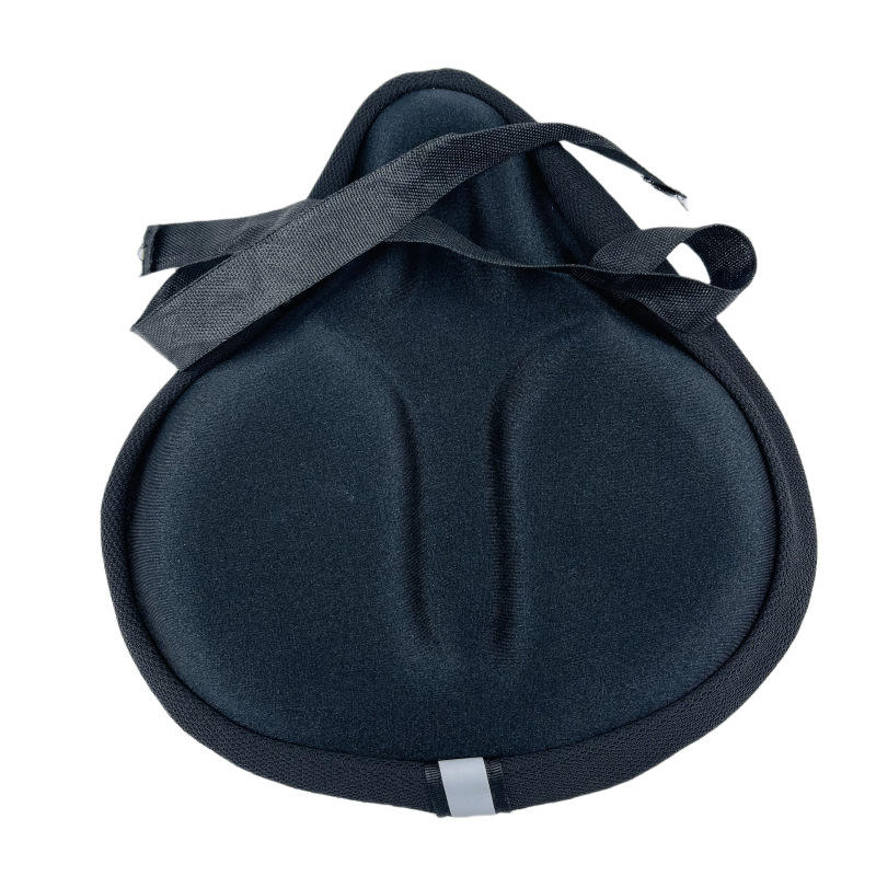 QT เบาะรองนั่งซิลิโคนสีดำพร้อมสายรัดแผ่นอานจักรยานที่สะดวกสบายสำหรับผู้ใหญ่ทุกเพศ
