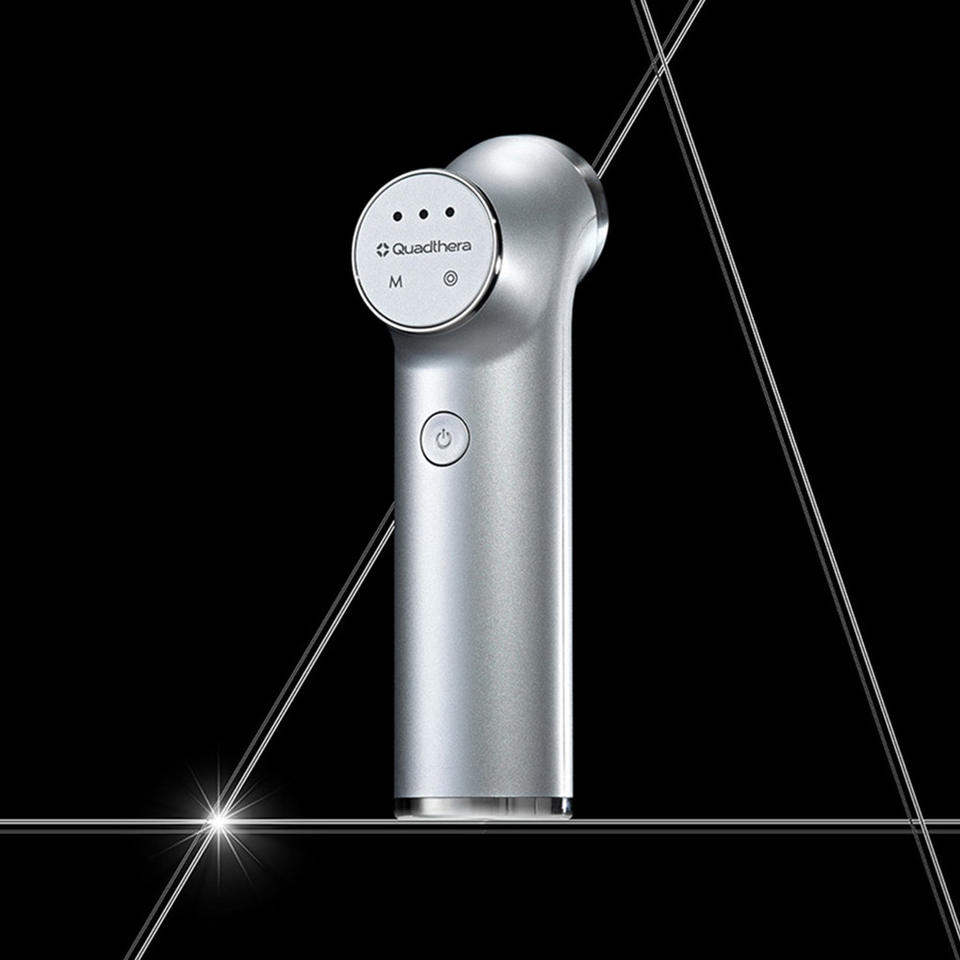Quadthera อุปกรณ์ดูแลผิวแบบเกาหลีขนาดเล็กสีเงินใช้งานได้หลากหลายโหมดอุปกรณ์เสริมความงามบนใบหน้าแบบพกพาชาร์จไฟได้เพื่อผิวกระจ่างใส