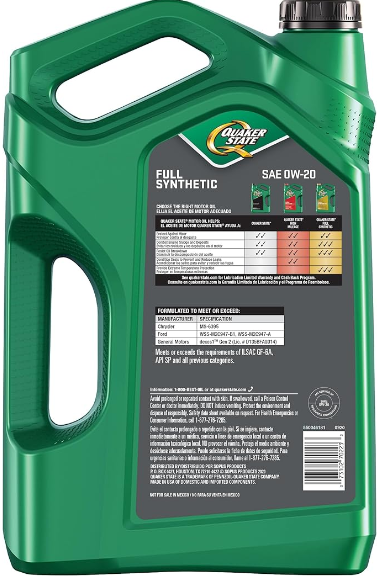 น้ำมันเครื่องสังเคราะห์เต็มรูปแบบ SAE 0W-20น้ำมันหล่อลื่นเครื่องยนต์5ควอเกอร์สเตต