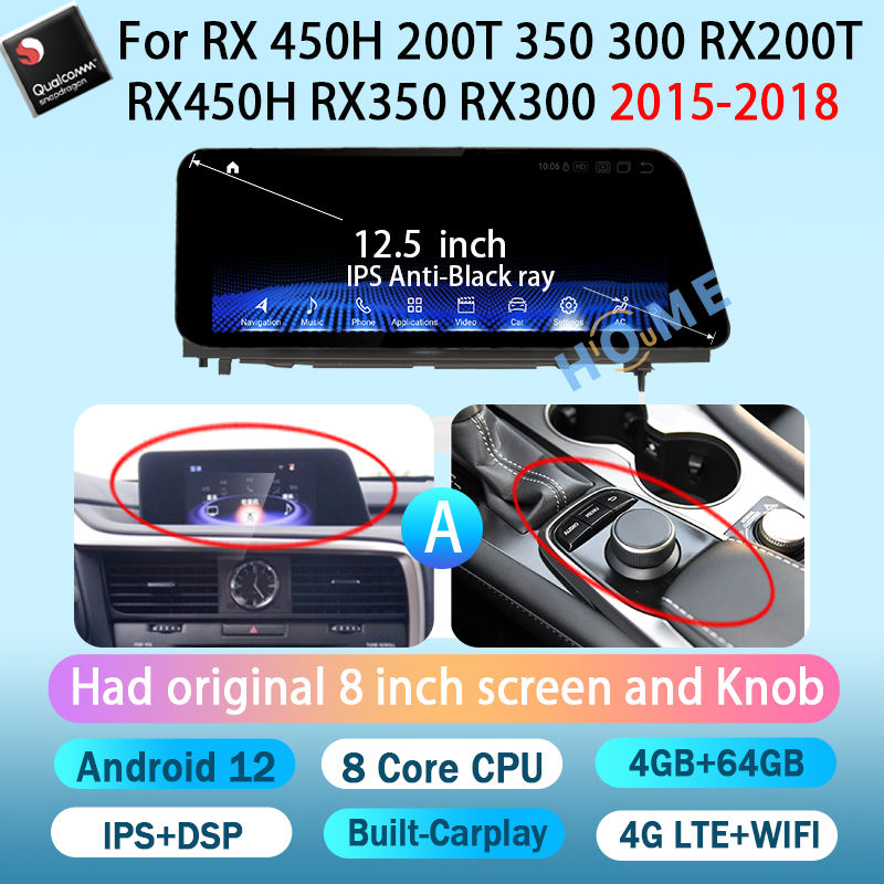 Qualcomm 12.5 "Android 12วิทยุติดรถยนต์สำหรับ Lexus RX 450h 200T 350 RX450H 300เครื่องเล่นวิดีโอมัลติมีเดีย2016-2020 CarPlay autoradio