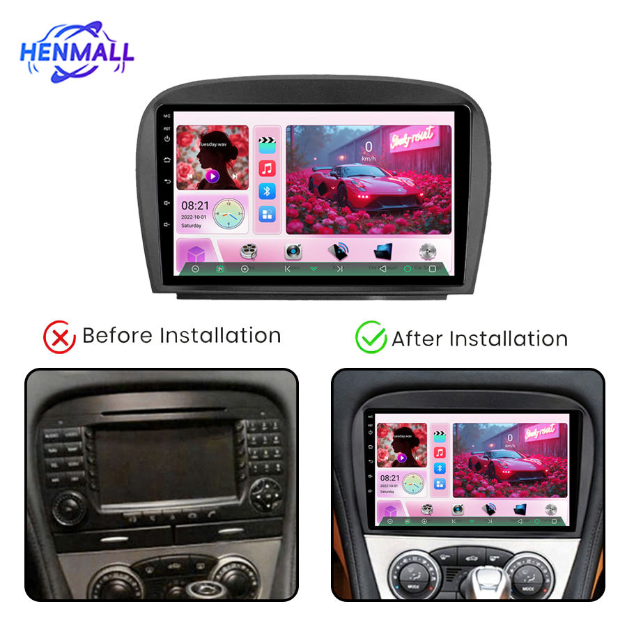 เครื่องเล่นดีวีดีติดรถยนต์ระบบแอนดรอยด์ Qualcomm Snapdragon หน้าจอ IPS ขนาด 9 นิ้ว 2 Din พร้อมระบบนำทาง GPS และ WIFI สำหรับรถยนต์ Mercedes Benz SL500 R230