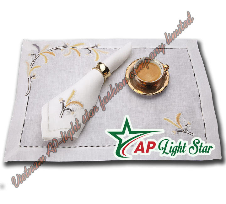 ผ้าปูโต๊ะ/แผ่นรองจานผ้าลินินสีขาวคุณภาพ 100% ขนาดสั่งทำได้ ปักลาย รูปทรงสี่เหลี่ยมผืนผ้า ผ้าเนื้อนุ่ม แห้งเร็ว เหมาะสำหรับร้านอาหาร งานเลี้ยง VNAP