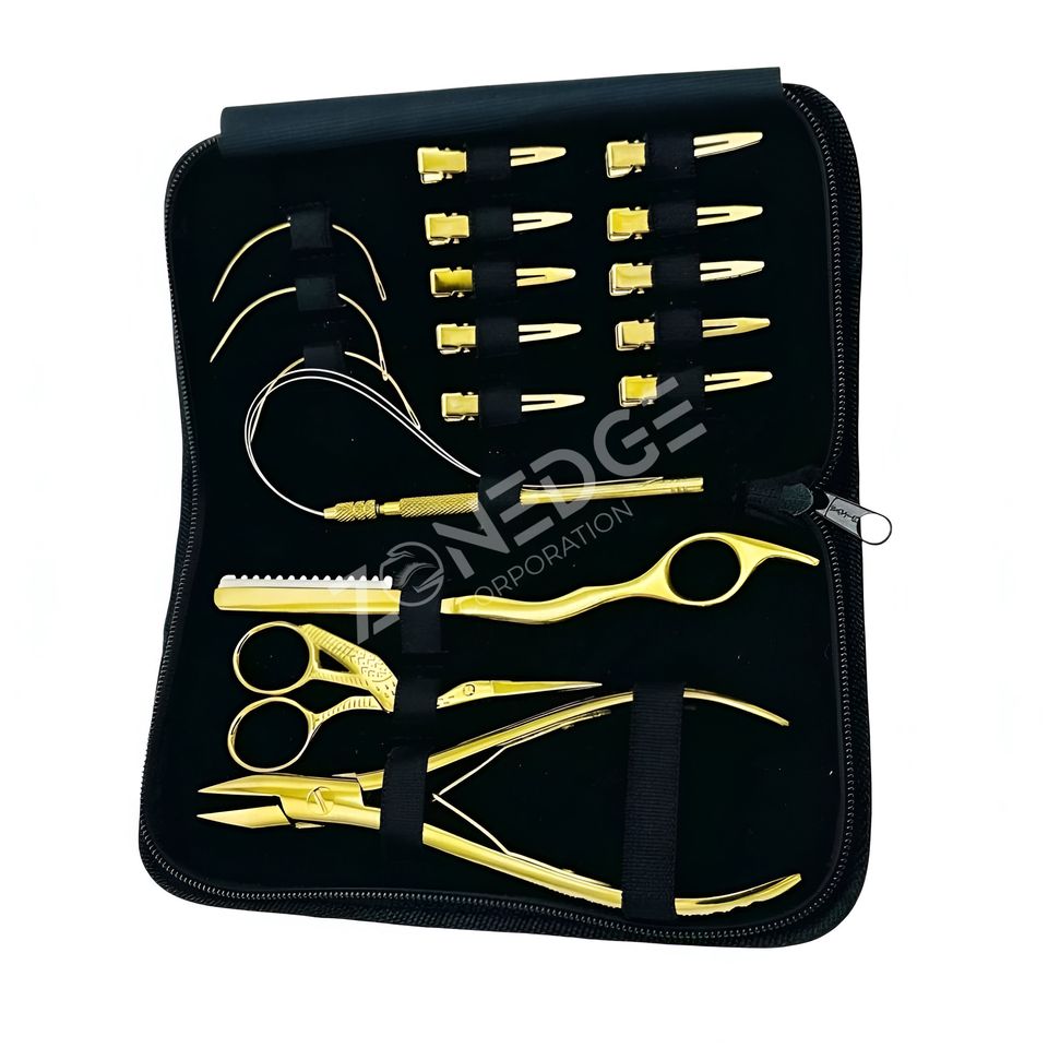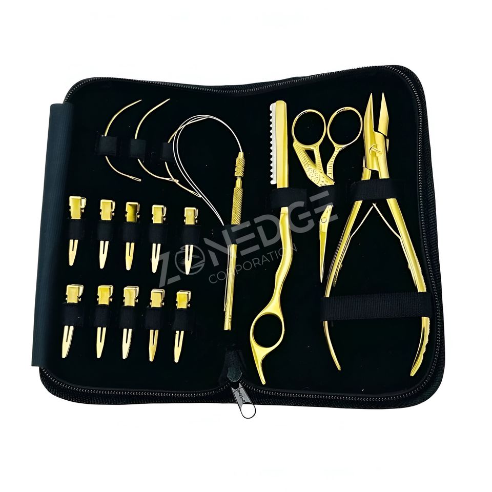 ชุดเครื่องมือต่อผมพลาสม่าสีทอง17ชิ้นสำหรับเครื่องมือต่อผมไมโคร & นาโนชุดคีมออกแบบที่กำหนดเองโดย zonedge