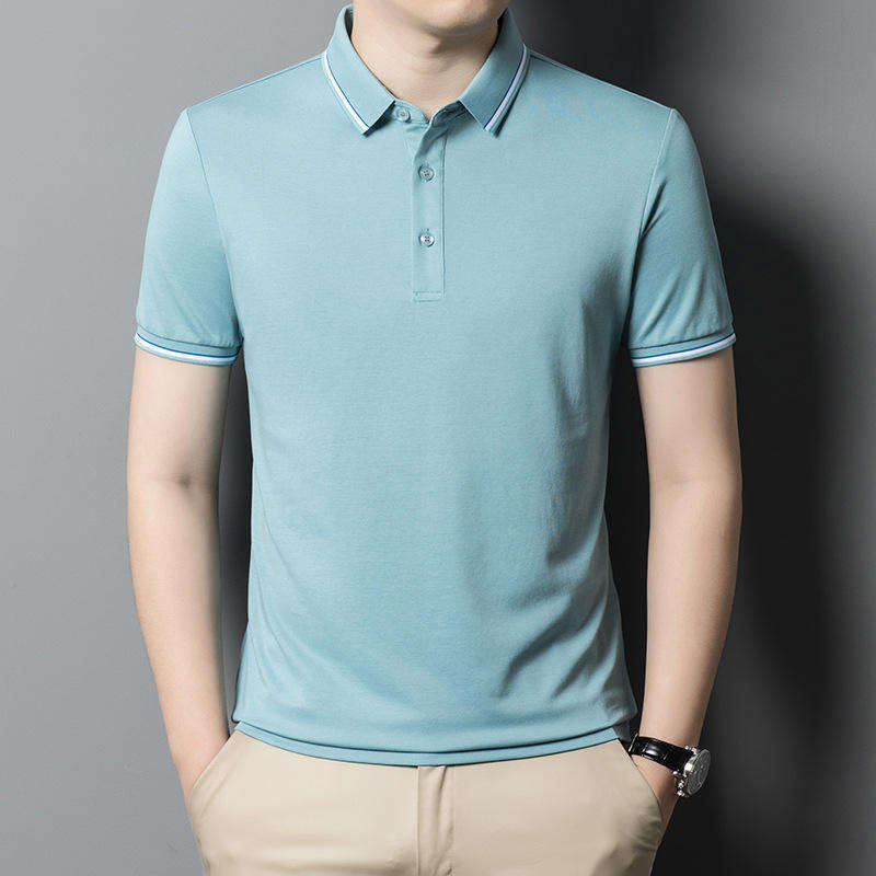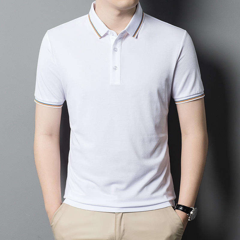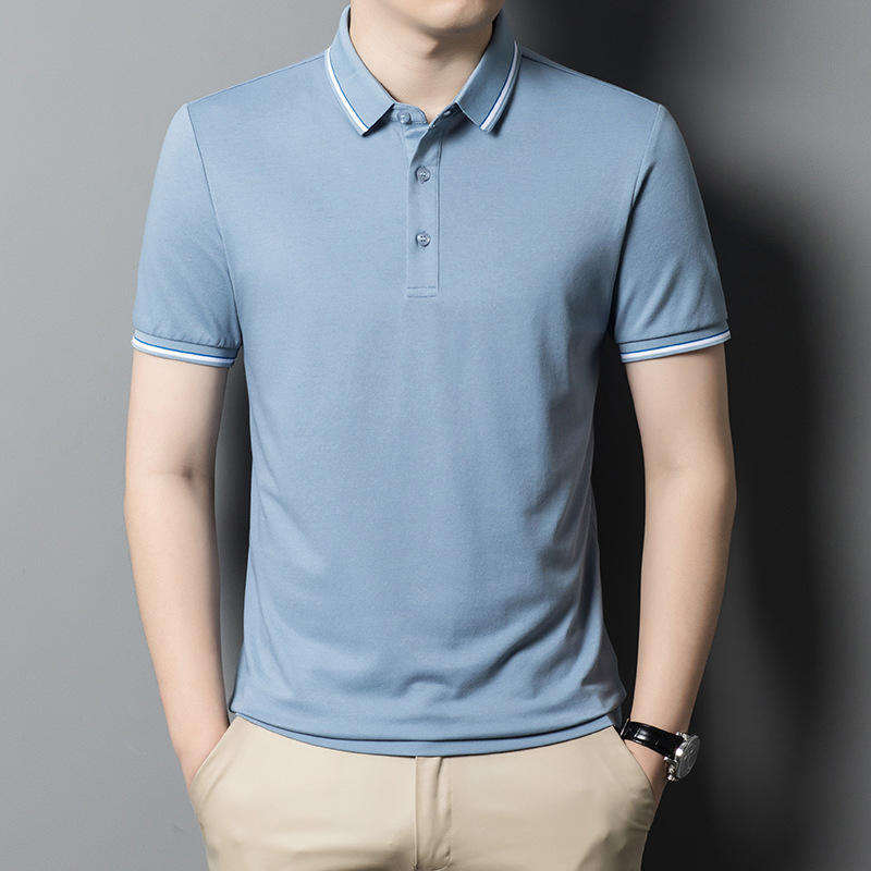 เสื้อโปโลผู้ชายผ้าฝ้ายโพลีเอสเตอร์/ ผ้าฝ้ายย้อมสีล้วนระบายอากาศได้ดีขนาดพลัสไซส์เสื้อยืดลายโลโก้ริงเกอร์