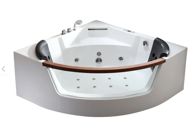 อ่างอาบน้ำคุณภาพสูงขนาด 59 นิ้ว สำหรับติดตั้งมุมห้อง พร้อมท่อระบายน้ำตรงกลางและรองรับน้ำหนักได้สูงสุด