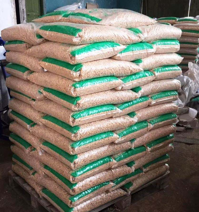 เม็ดไม้คุณภาพสูงขนาด 6-8 มม. ในถุง 15 กก. / เชื้อเพลิงชีวมวลสำหรับให้ความร้อน เม็ดไม้ขายส่งจำนวนมาก