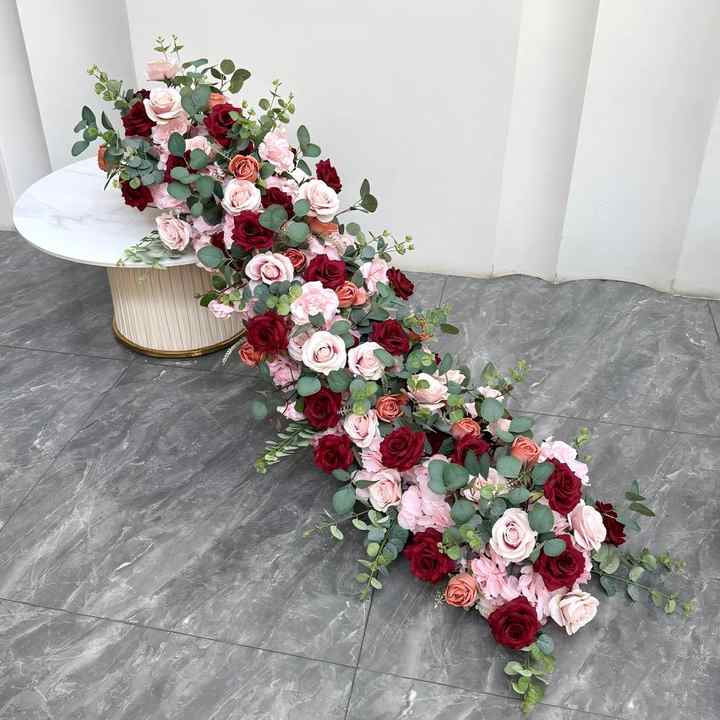 ลูกวิ่งดอกไม้ประดิษฐ์สำหรับโต๊ะผ้าคาดโต๊ะดอกไม้สีชมพูแดงตารางงานแต่งงานดอกไม้ประดิษฐ์