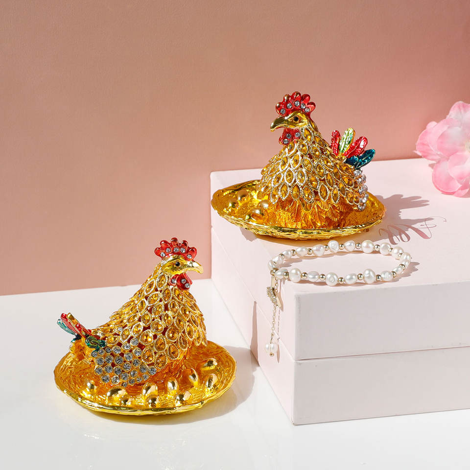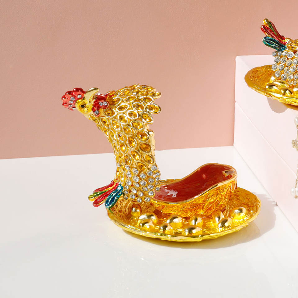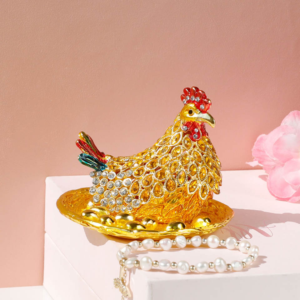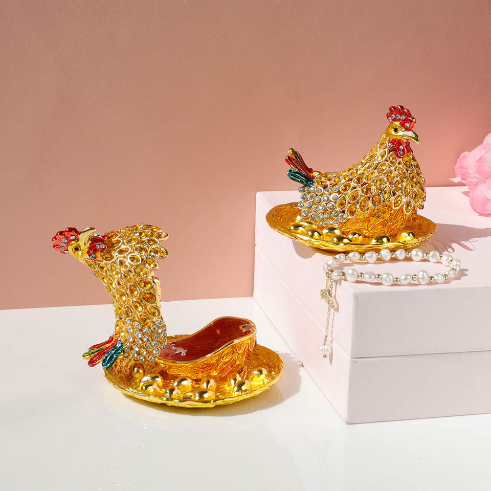 กล่องเครื่องประดับโลหะรูปสัตว์ใหม่สำหรับตกแต่งบ้านอุปกรณ์จัดเก็บเครื่องประดับรูปไก่