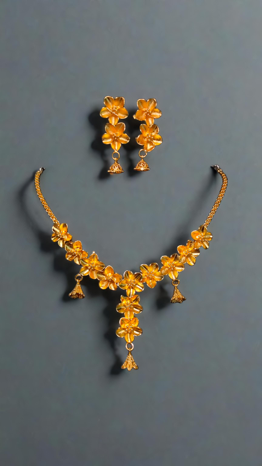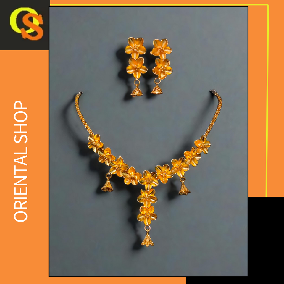 ชุดต่างหูสร้อยคอพร้อมสร้อยคอชุบทอง22K ดีไซน์ทันสมัยสำหรับผู้หญิงชุดเครื่องประดับสร้อยคอต่างหู