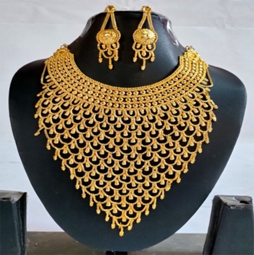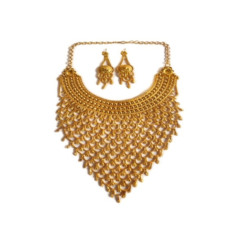 Quality Assured 22K Gold Plated Necklace Earrings Set with Traditional Designed Necklace Earrings Set for Sale