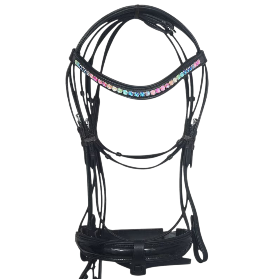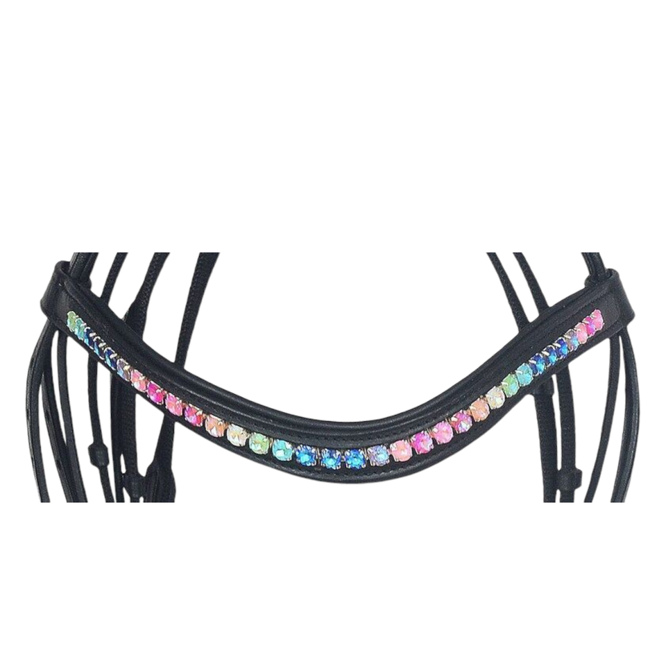 บังเหียนม้าหนังสีดำพร้อมแถบคิ้วคริสตัลหลากสี