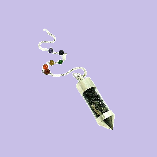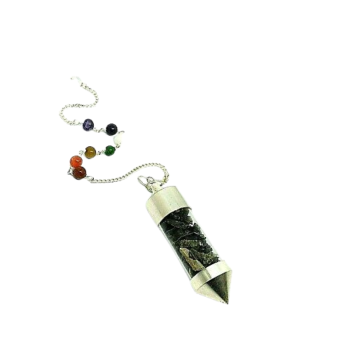 Black Tourmaline Chips Chamber Pendulum with Seven Chakra Chain