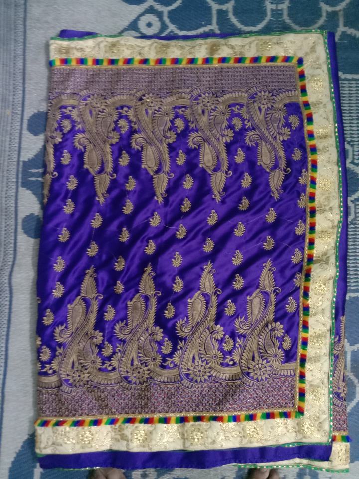 ชุดส่าหรีของผู้หญิงชุดส่าหรีสไตล์อินเดียงานแฮนด์เมดสีฟ้าล้วน