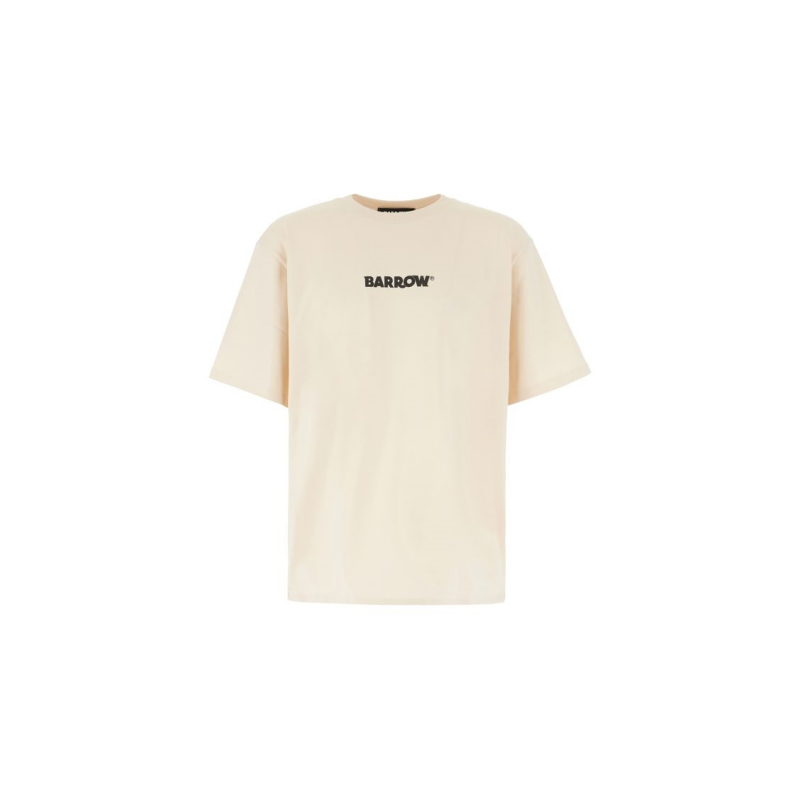 เสื้อยืดผ้าฝ้ายพิมพ์ลายสีเบจเสื้อยืดคอกลมเสื้อโอเวอร์ไซส์